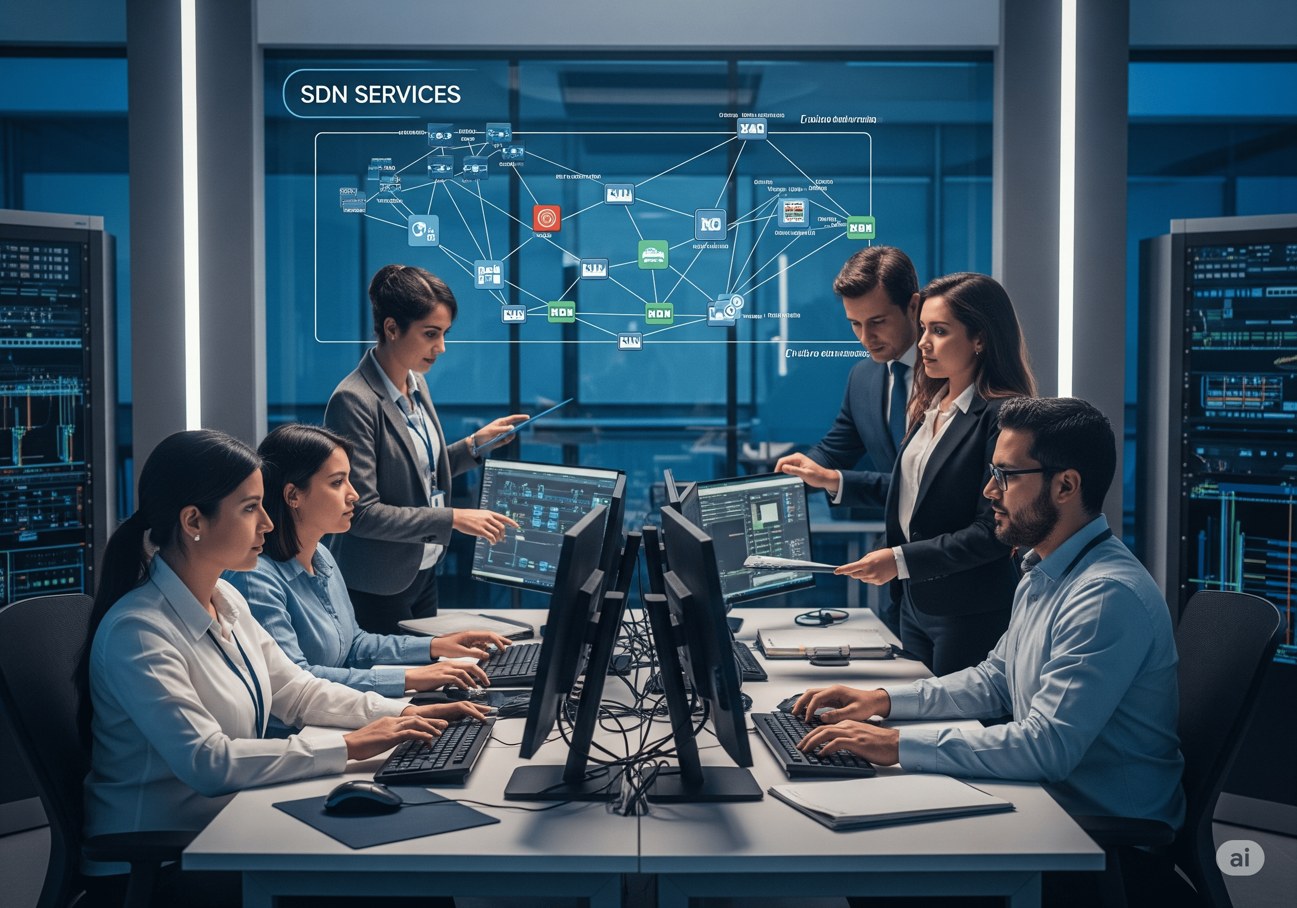 Nuestra solución SDN permite a las empresas gestionar su red de forma centralizada y dinámica, adaptándose en tiempo real a las necesidades del negocio. A través de una plataforma orquestadora, puedes controlar políticas, seguridad y rendimiento desde un solo punto, sin depender de configuraciones manuales en cada dispositivo.